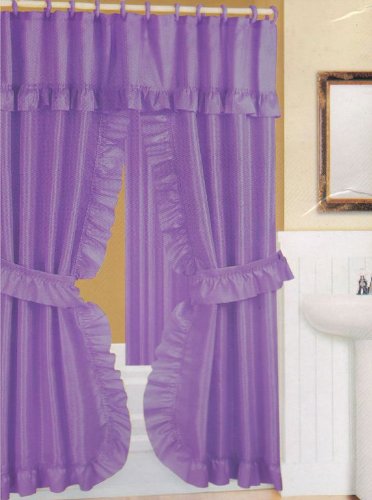 Purple Fabric Double Swag Shower Curtain with Matching Fabric Covered Shower Rings/Hooks and Vinyl Liner
